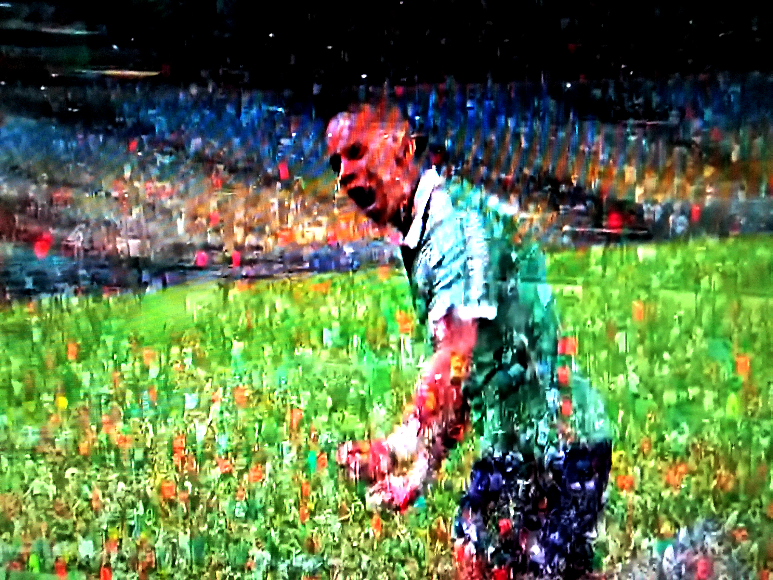No segundo tempo, o time de camisa verde, que o narrador insistia em identificar como tricolor carioca, fez mais um gol, assinado por Marcos Junior.