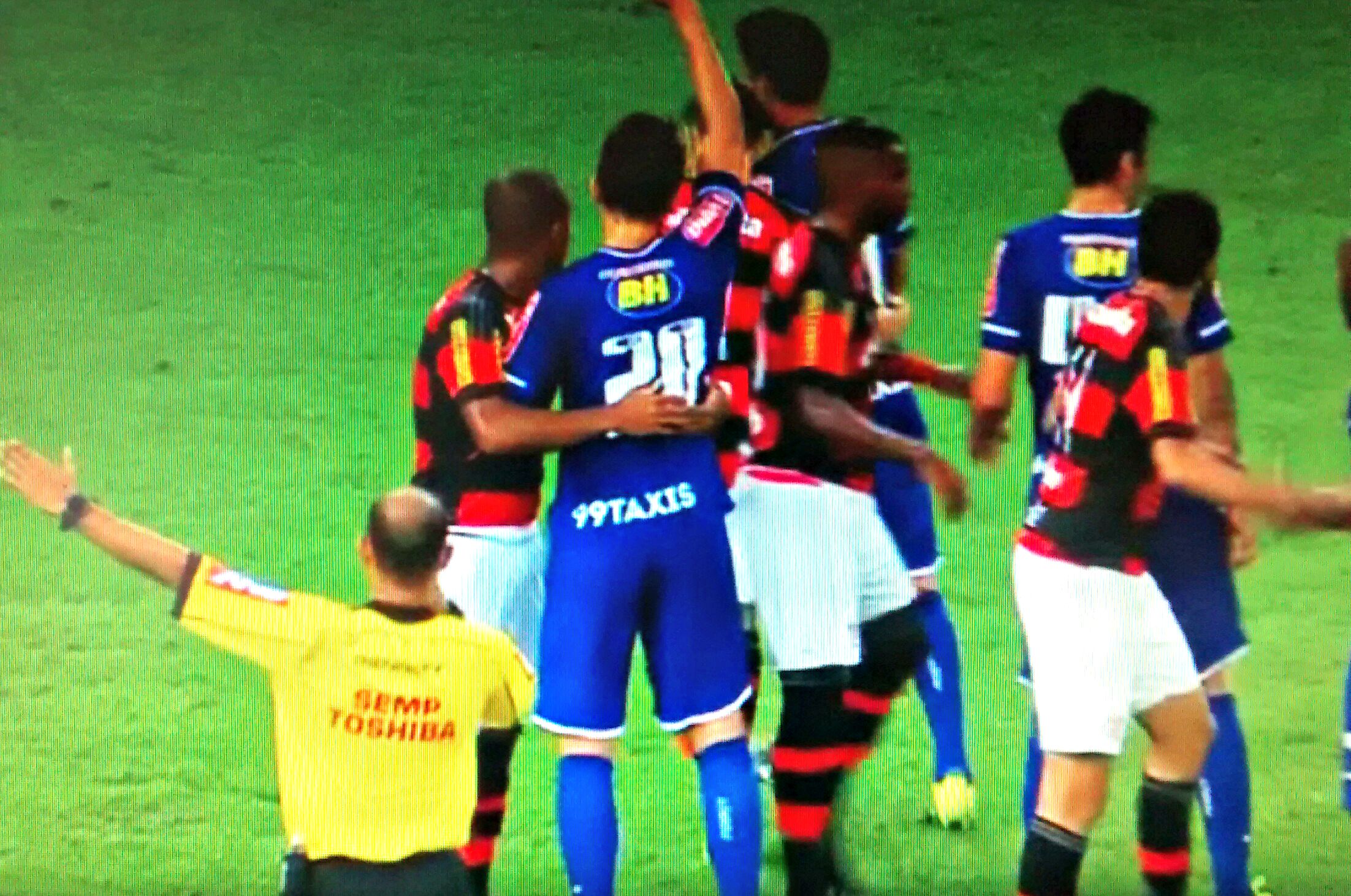 Ainda não foi comentado em nota oficial pelos dirigentes do Flamengo o pênalti escandaloso cometido por Samir, ao agarrar e prender o cruzeirense Paulo André aos 20 minutos do primeiro tempo, e ignorado pelo árbitro Marcelo Aparecido de Souza, que estava a três ou quatro metros do lance.